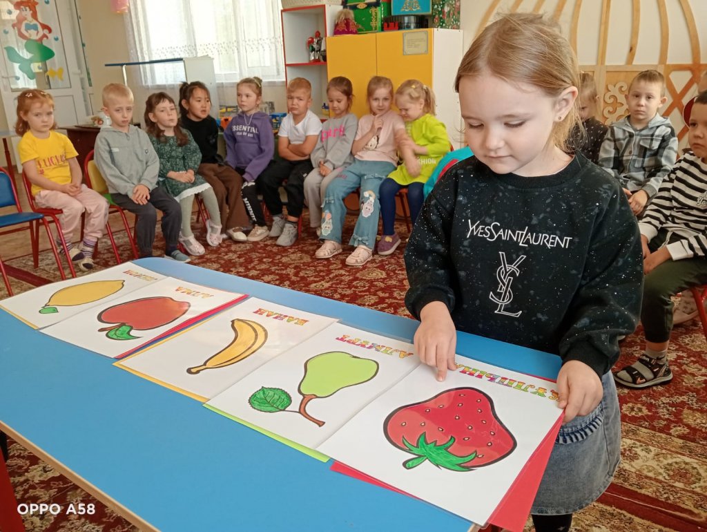 • 09.10.2025 Мектепалды даярлық «Аққулар» тобында Балалар жемістердің түрлерін, түстері мен дәмдерін ажыратуды үйреніп, қызықты ойындар мен шығармашылық жұмыстарға белсене қатысты. 🌈 🍓🍌 орыс тіліне аудару Қазақ тілі мұғалімі: Алип Меруерт