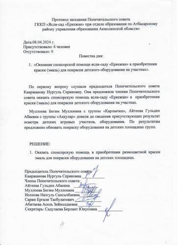Государственное коммунальное казенное предприятие «Ясли – сад «Еркежан» города Атбасар при отделе образования по Атбасарскому району управления образования Акмолинской области»