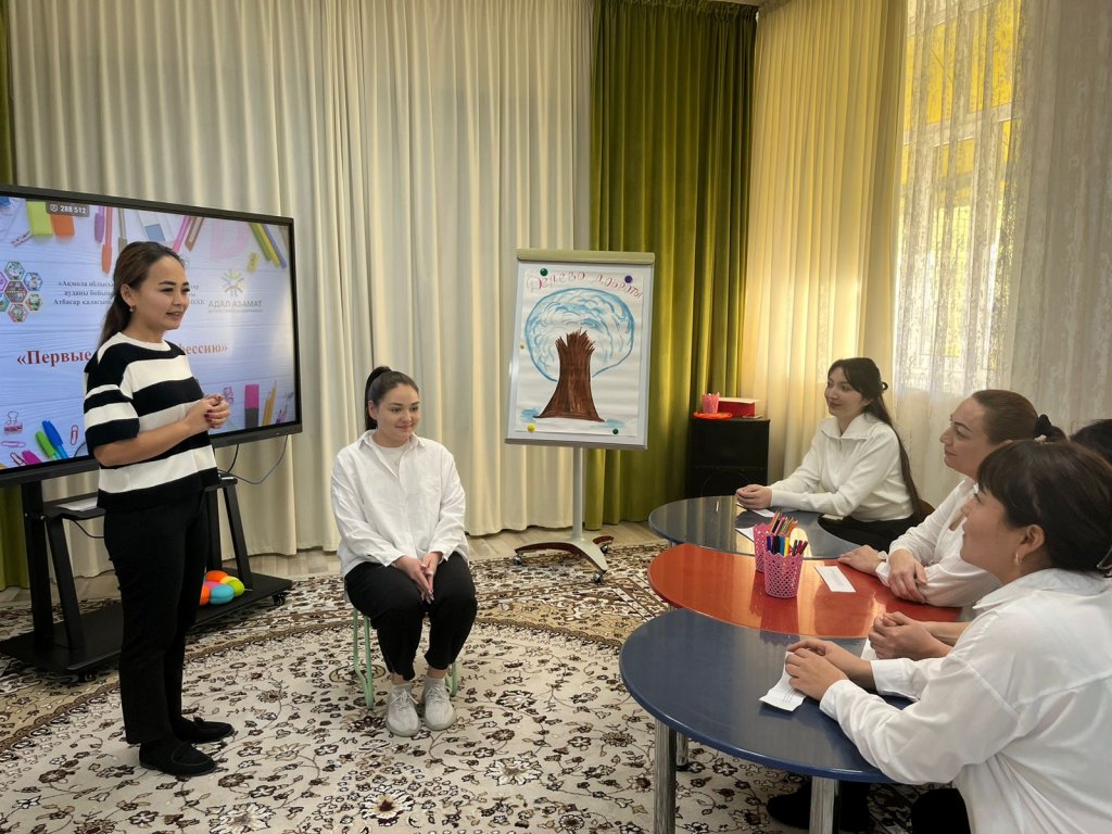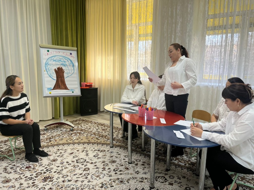 «Мамандыққа алғашқы қадамдар» атты тренинг өткізді.Іс-шараның мақсаты – кәсіби мотивацияны арттыру, коммуникативтік дағдыларды дамыту және ұжымдағы жағымды жұмыс атмосферасын қалыптастыру болды.Тренинг барысында қатысушылар командалық өзара әрекеттестікті нығайтуға бағытталған тапсырмаларды орындап, өз тәжірибелерімен бөлісті, қазіргі заманғы тәрбиеші көмекшісіне қажет маңызды қасиеттер мен кәсіби өсу жолдарын талқылады.Тренинг жылы да достық көңіл күйде өтіп, қатысушыларға өздеріне деген сенімділікті арттыруға мүмкіндік берді.