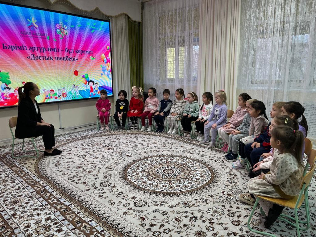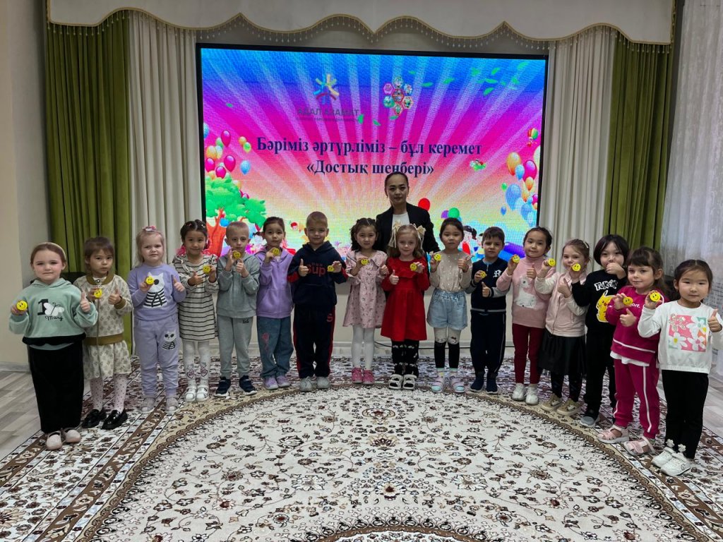 Бүгін психологиялық апталығы аясында «Бәріміз әртүрліміз — бұл керемет», «Көңілді күн», «Достық шеңбері» атты іс-шаралар мектепалды топтары «Арай» және «Аққулар» тәрбиеленушілерімен психолог Әлкеш А.У. өткізді.