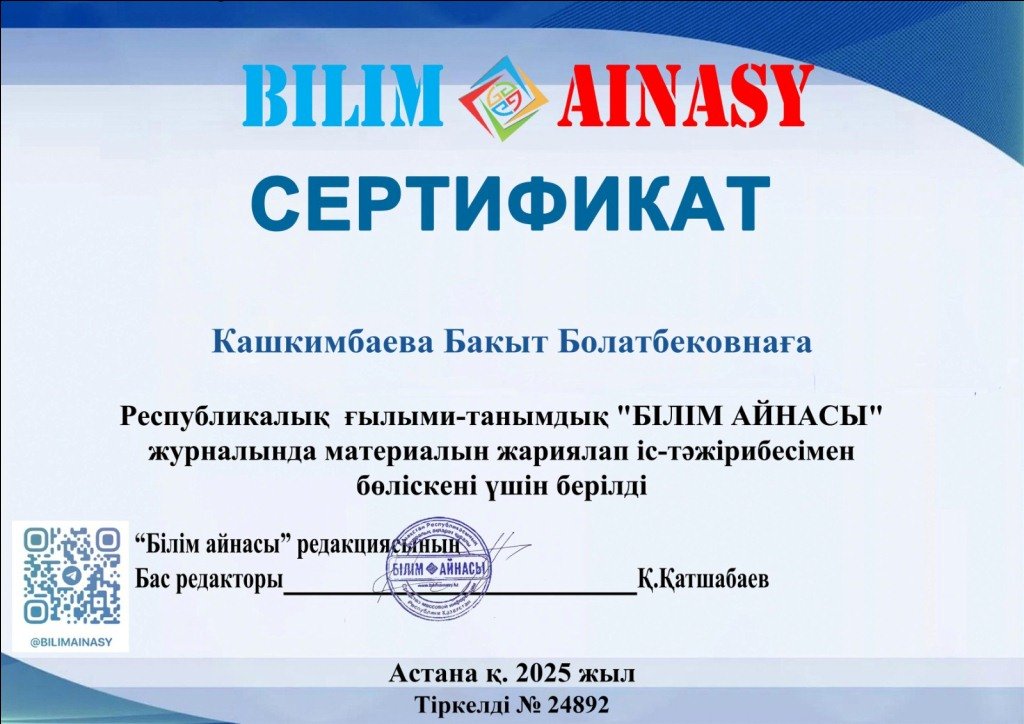 мақалаларын жариялады. Кашкимбаева Бакыт Болатбековна «Джафар мен сиқырлы шам Жаңа жылда» тақырыбында, Аканова Саягуль Шайдоллаевна «Кілем тоқу өнері» атты мақаласын ұсынды.Бұл жарияланымдар тәрбиешілердің кәсіби шеберлігін және шығармашылық ізденісін көрсетеді.