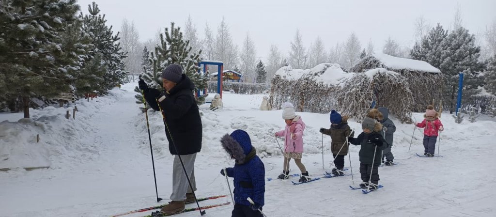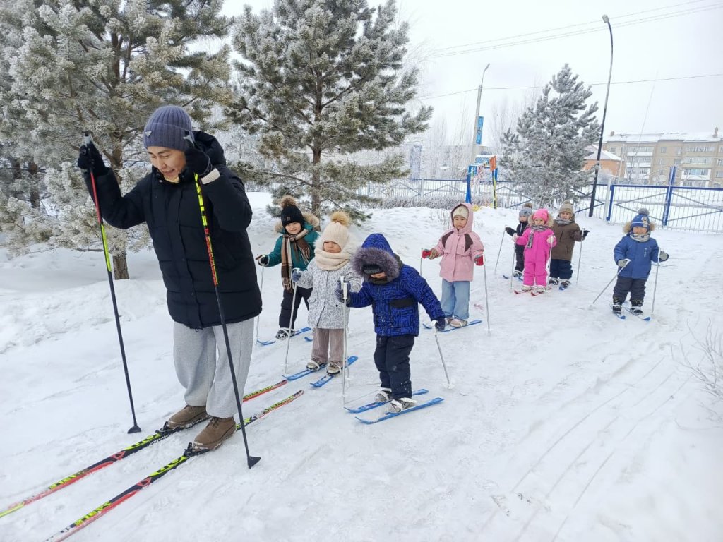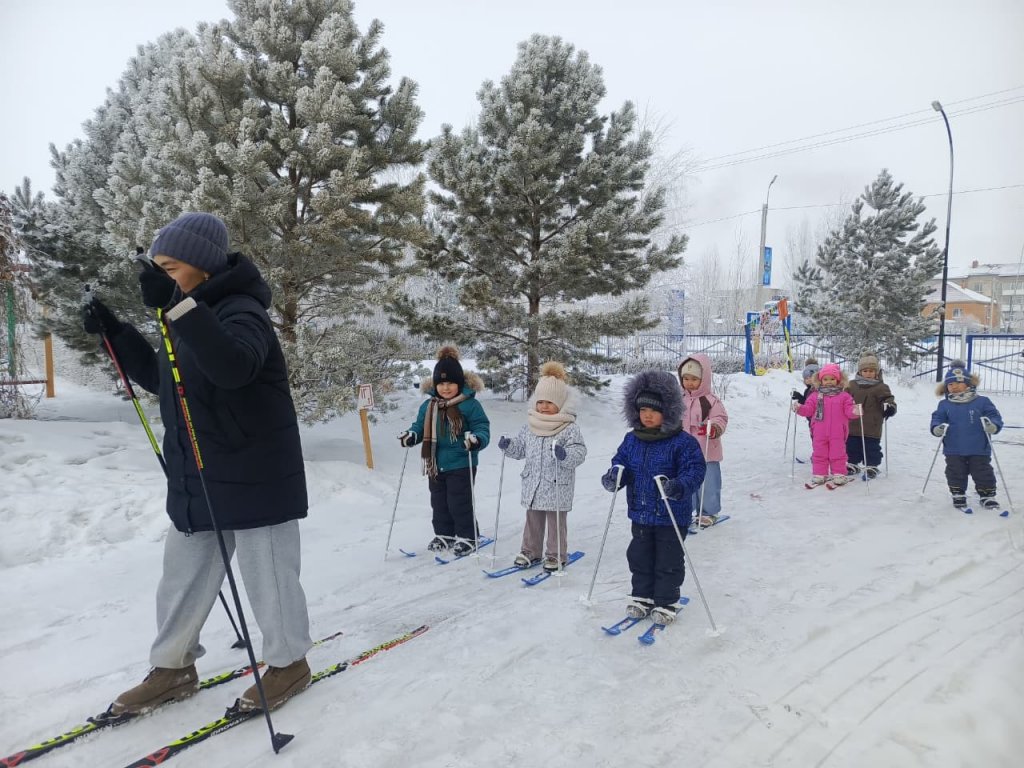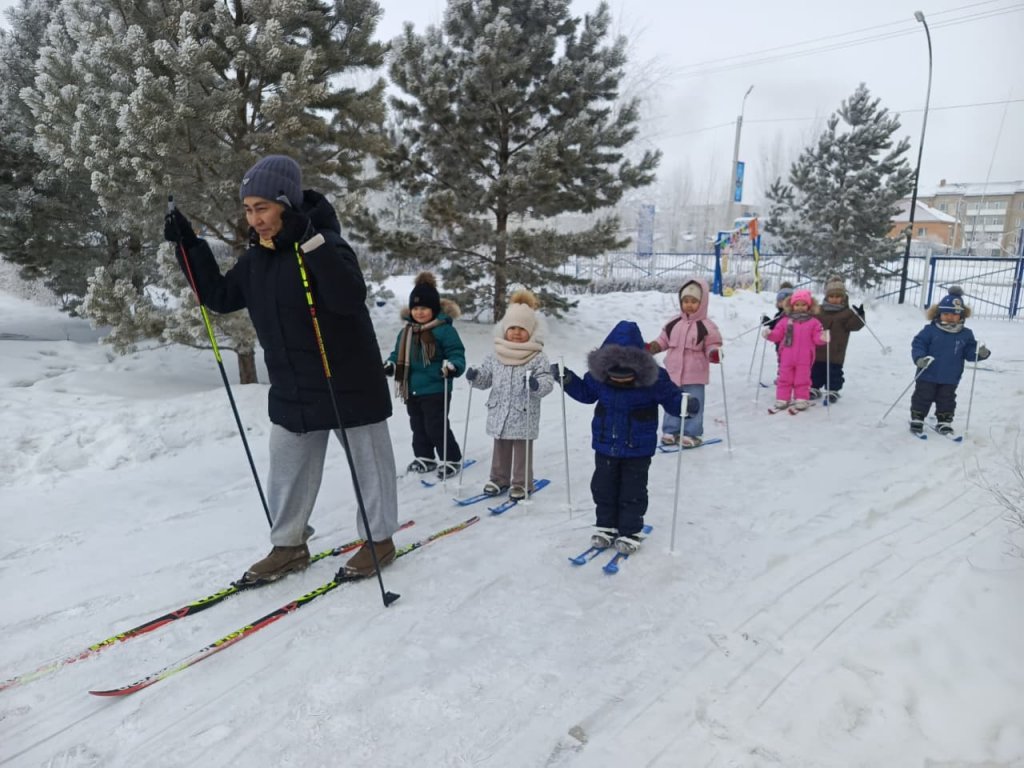 Ересек «Балапан» тобының балаларымен таза ауада шаңғымен сырғанадық. Балалар қыс мезгілінің ерекшеліктерімен танысып, шаңғы тебу ережелерін меңгерді. Шаңғы тебу арқылы олардың қимыл-қозғалыс белсенділігі артып, тепе-теңдікті сақтау, төзімділік пен ептілік дағдылары дамыды. Балалар уақыттарын көңілді әрі пайдалы өткізіп, қысқы спорт түріне қызығушылық танытты.