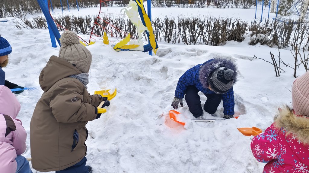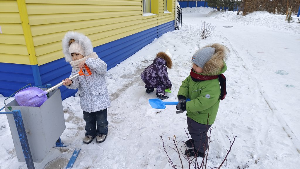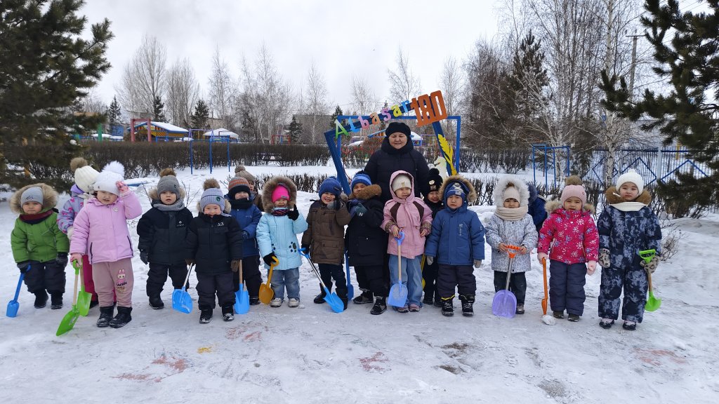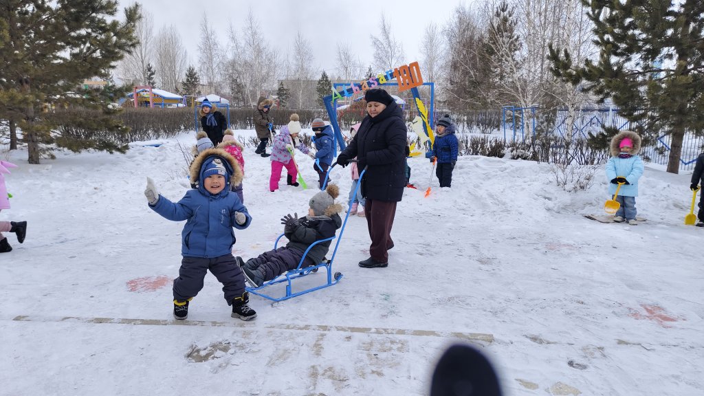 Балабақшадағы серуен барысында таза ауада ұйымдастырылған қысқы ойындар- шанамен сырғанау, қар атысу және күрекпен қар тазалау - балалардың дене дамуына, қозғалыс дағдыларының қалыптасуына және жағымды көңіл күйінің артыуына ықпал етті.