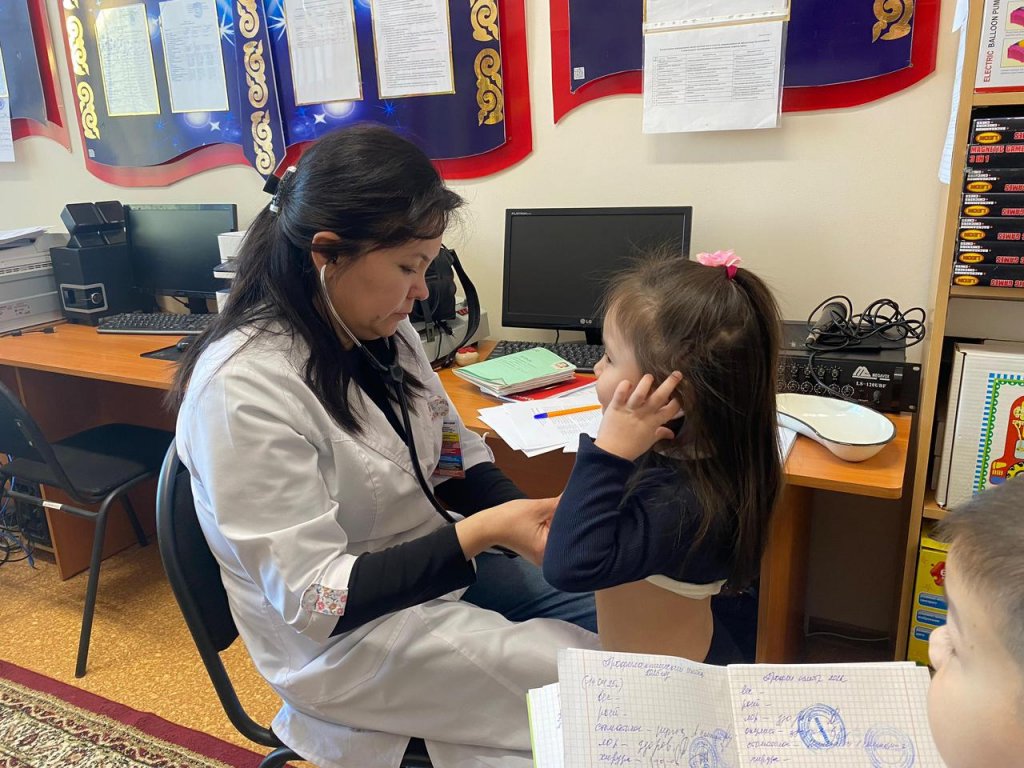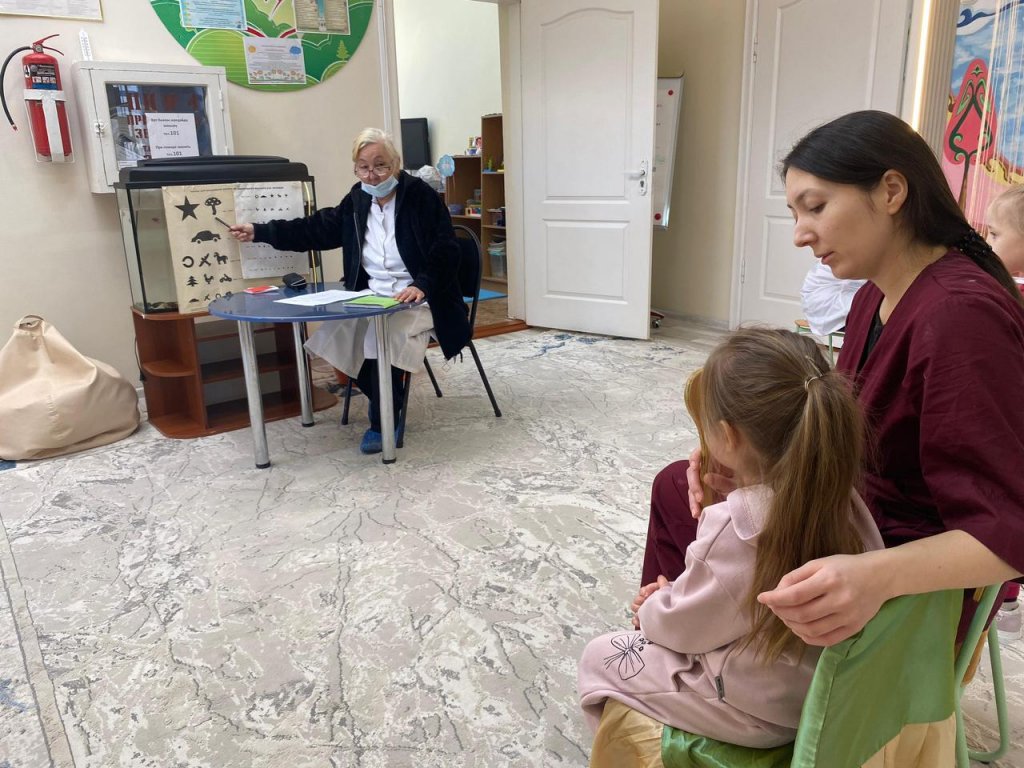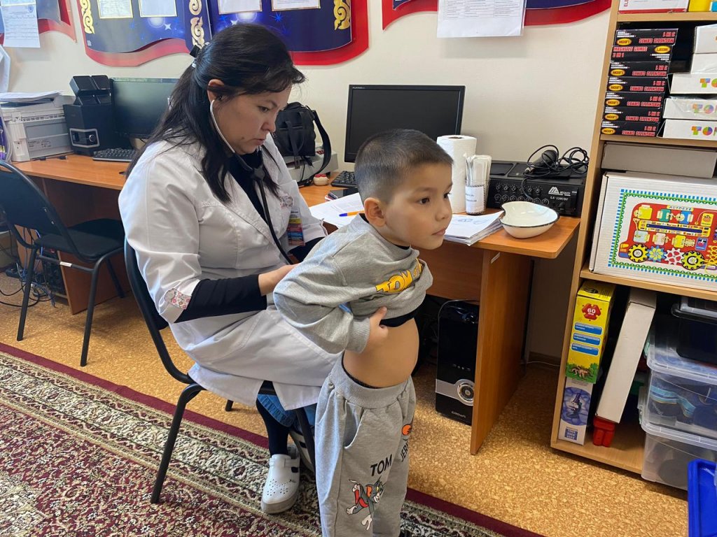 Балаларды педиатр, окулист, хирург және оториноларинголог (ЛОР) дәрігерлері қарап шықты. Тексеру денсаулықтағы мүмкін болатын ауытқуларды ерте анықтау және аурулардың алдын алу мақсатында жүргізілді.