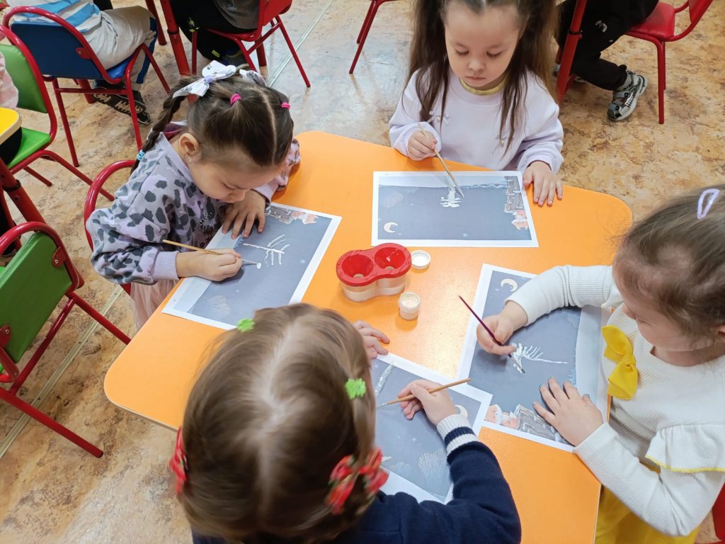 Ересек «Қарлығаш» тобында «Қысқы пейзаж» тақырыбында ұйымдастырылған оқу іс-әрекеті өтті (сюжеттік сурет салу)