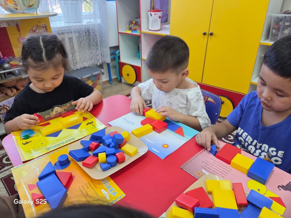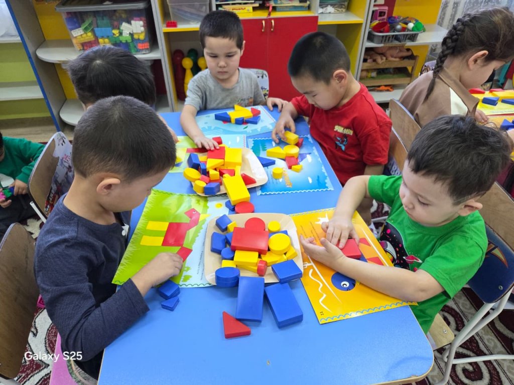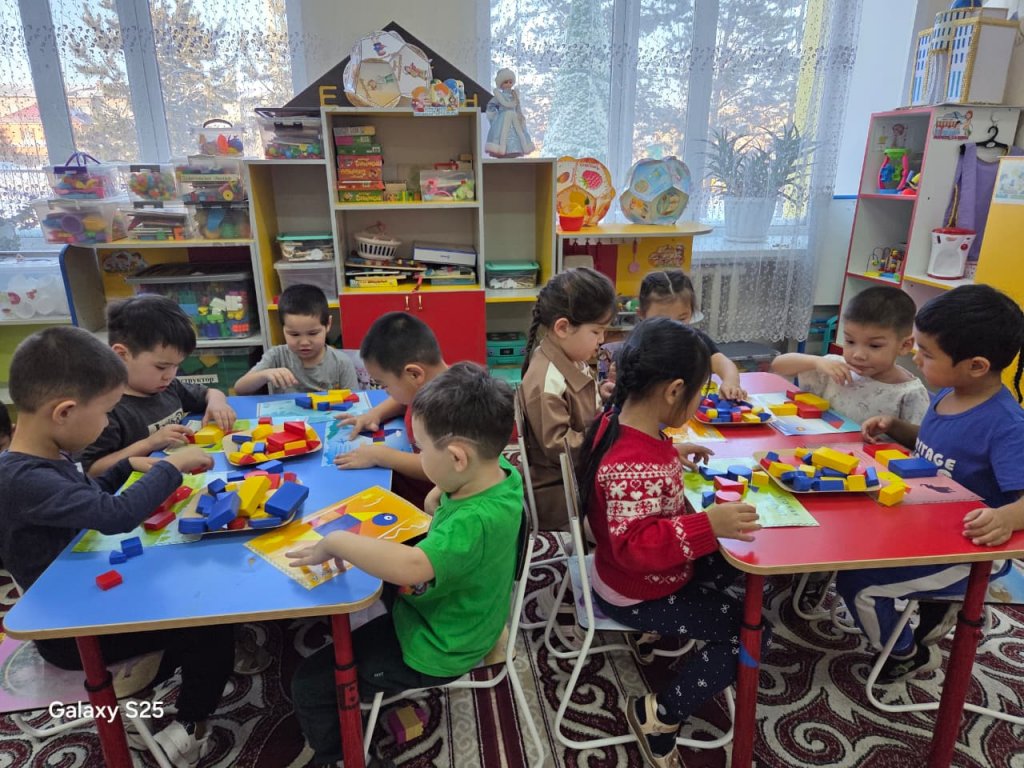 Ересек «Балапан» тобының Дьенеш блоктарын пайдалану арқылы жүргізілетін іс-әрекетінің мақсаты — балалардың логикалық ойлау қабілетін дамыту, пішіндерді түсі, көлемі, қалыңдығы және формасы бойынша ажырата білуге үйрету. Үлгі бойынша құрастыру зейінді, есте сақтау қабілетін, кеңістікте бағдарлауын дамытуға және ұқыптылықты қалыптастыруға ықпал етеді.