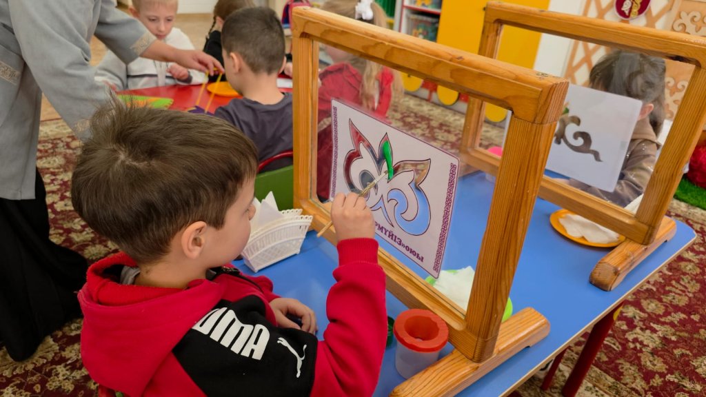 Іс-әрекет барысында тәрбиеленушілер қазақтың ұлттық ою-өрнектерімен танысып, олардың мағынасы мен ерекшеліктері туралы білім алды. Балалар әртүрлі тәсілдерді қолдана отырып, бірнеше ою түрлерін жасап, өздерінің шығармашылық қабілеттерін көрсетті.