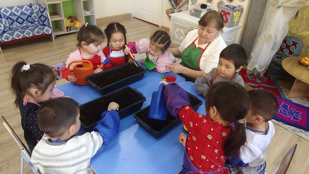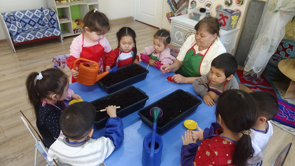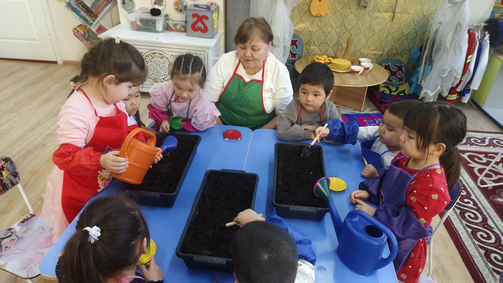 Ересектер «Балапан» тобының тәрбиеленушілерімен экологиялық тәрбиеге арналған «Терезедегі бақша» атты іс-шара ұйымдастырылды. Іс-шара барысында балалар тұқым отырғызу жұмыстарын жүргізді. Балалар тұқымды топыраққа дұрыс орналастырып, су құю сияқты қарапайым күтім жұмыстарын орындады. Бұл олардың еңбекке деген қызығушылығын арттырып, жауапкершілікке баулиды. Осындай іс-шаралар арқылы балалардың табиғатқа деген сүйіспеншілігі қалыптасып, қоршаған ортаға ұқыпты қарауға тәрбиеленеді.