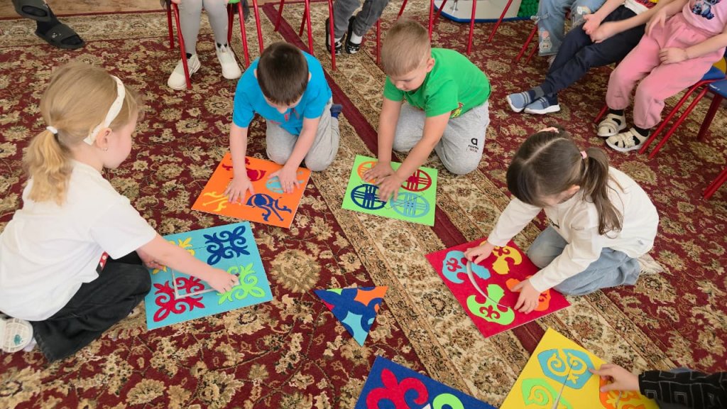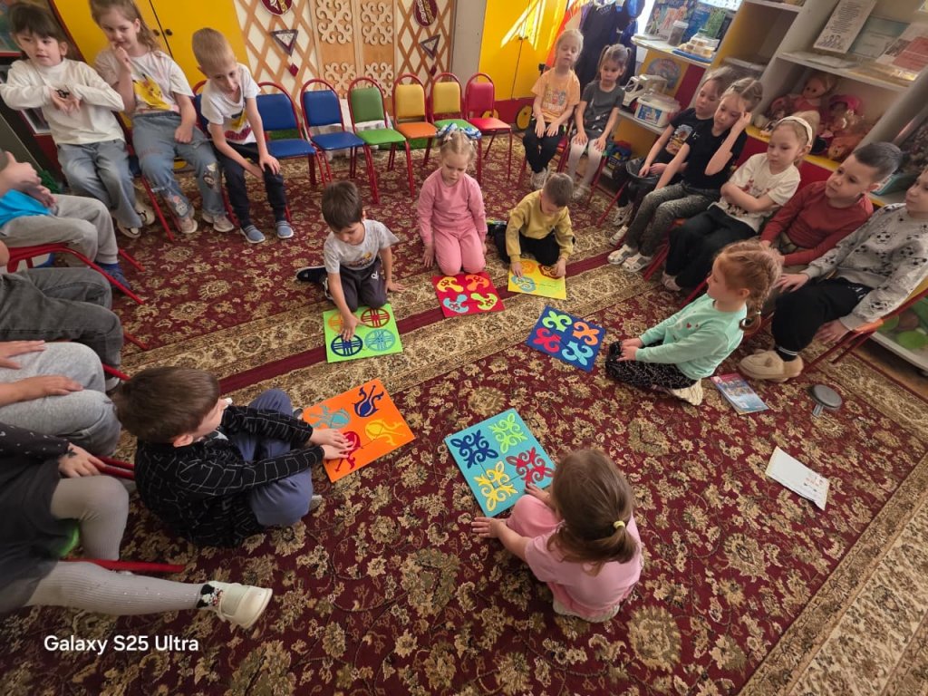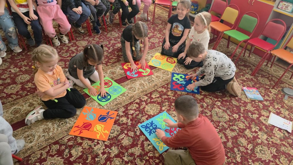 Дети различали цвета и выполняли задания, сопоставляя орнаменты по форме и цвету. В ходе игры у воспитанников развивались логическое мышление, внимание и познавательный интерес.