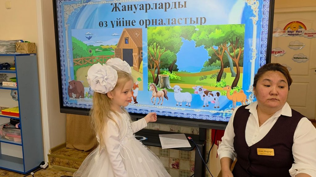 Үй жануарлары, жабайы аңдар, көкөністер мен жеміс-жидектер, түстер бойынша тапсырмаларды қызығушылықпен орындады. 🐾🍎🎨